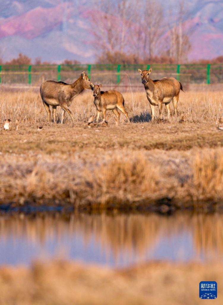 青銅峽庫區濕地自然保護區總面積174.93平方公里,是寧夏最大的黃河灘涂類型濕地。2024年9月底,35頭麋鹿落戶青銅峽庫區濕地自然保護區,經過一個月適應期后被野放在200余畝的圍欄內。目前,隨著6只麋鹿幼崽的誕生,當地麋鹿種群繁育工作邁入新階段,放歸區域從200余畝擴展至3000余畝,保護工作也從遷地擴繁轉向野化放歸,開啟了黃河流域寧夏段生物多樣性保護的新篇章。