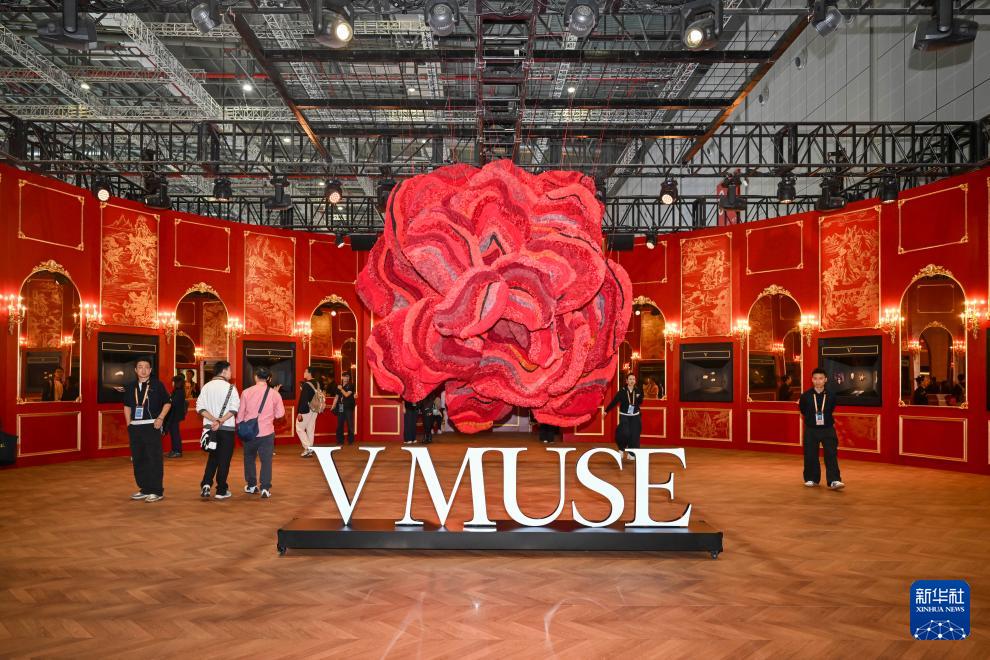 11月5日,觀眾在第八屆進博會消費品展區VMUSE珠寶展臺參觀。