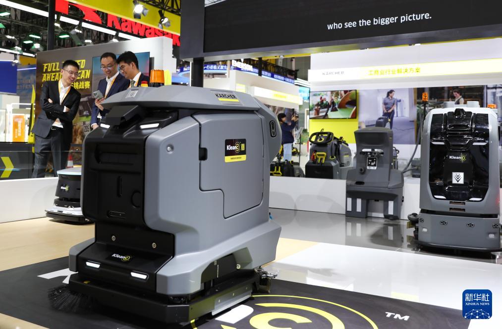 這是11月5日在第八屆進博會技術裝備展區德國卡赫展臺拍攝的清潔設備展品。