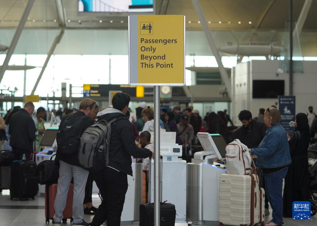 11月5日,在美國紐約肯尼迪國際機場,乘客排隊值機。