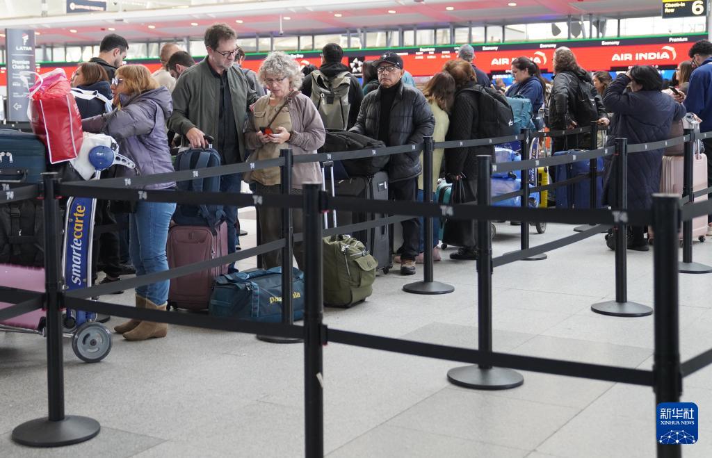 11月5日,在美國紐約肯尼迪國際機(jī)場(chǎng),乘客排隊(duì)值機(jī)。