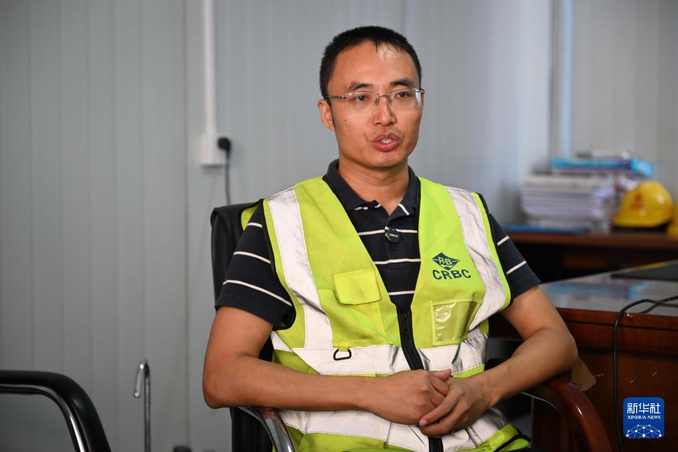 9月11日,在塔吉克斯坦卡拉依洪姆村附近的中塔公路二期項目主營地,姜樹林接受新華社記者采訪。