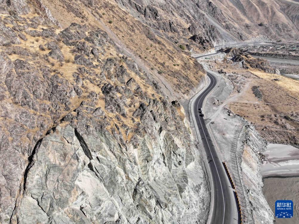這是9月11日在塔吉克斯坦卡拉依洪姆村附近拍攝的中塔公路二期路段(無人機照片)。