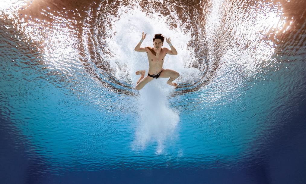 11月5日,山東隊選手練俊杰在第十五屆全國運動會跳水男子個人全能10米跳臺比賽中。新華社記者 夏一方 攝