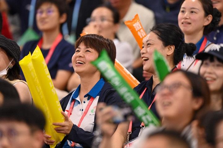 10月16日,觀眾觀看第十五屆全運會射擊女子10米氣手槍決賽。新華社記者 丁磊 攝