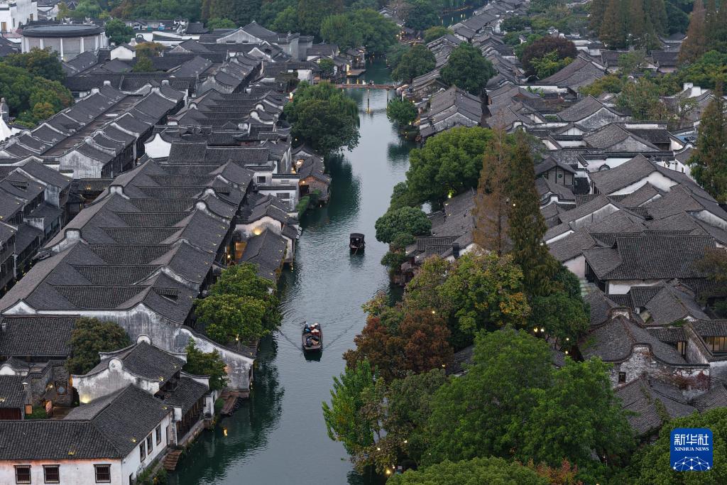 這是11月5日拍攝的烏鎮西柵景區(無人機照片)。