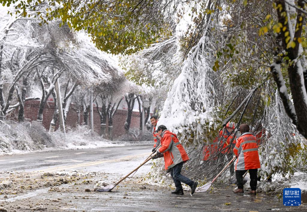 11月6日,工作人員在烏魯木齊市水磨溝區(qū)的一處公園里清雪。