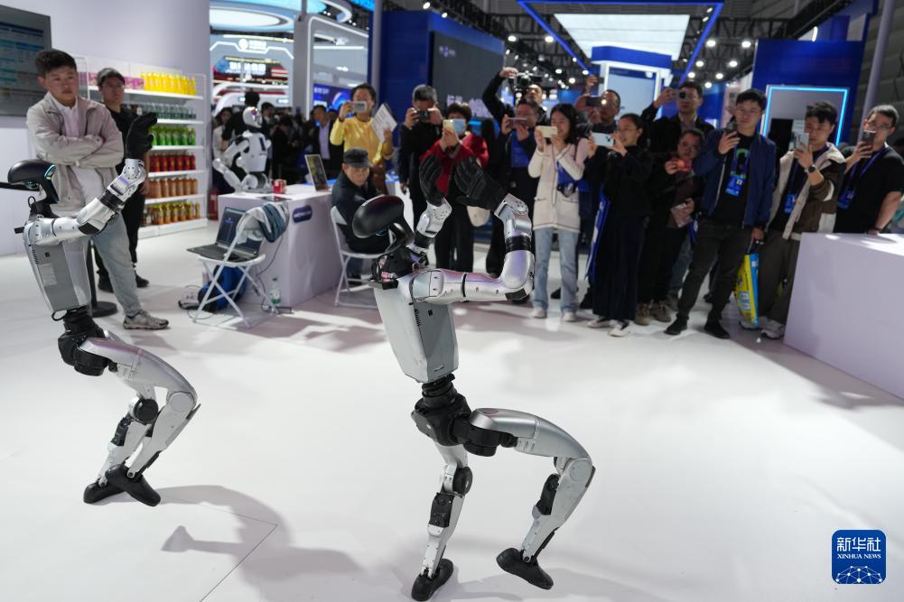 11月6日,觀眾在2025年世界互聯網大會“互聯網之光”博覽會現場觀摩人形機器人跳舞。