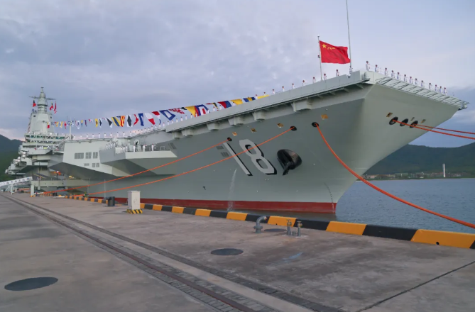 11月5日,我國第一艘電磁彈射型航空母艦福建艦入列授旗儀式在海南三亞某軍港舉行。福建艦是我國第一艘電磁彈射型航空母艦,也是我國第三艘航空母艦,舷號為“18”,2022年6月下水命名。福建艦由我國完全自主設計建造,其電磁彈射技術處于世界先進水平。