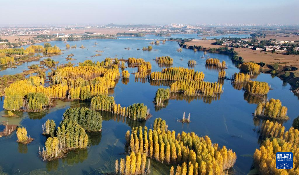 初冬時節,在河北省邢臺市隆堯縣亦城村泜河沿岸,樹葉金黃,與水面、河岸相映襯,勾勒出一幅美麗和諧的自然畫卷。