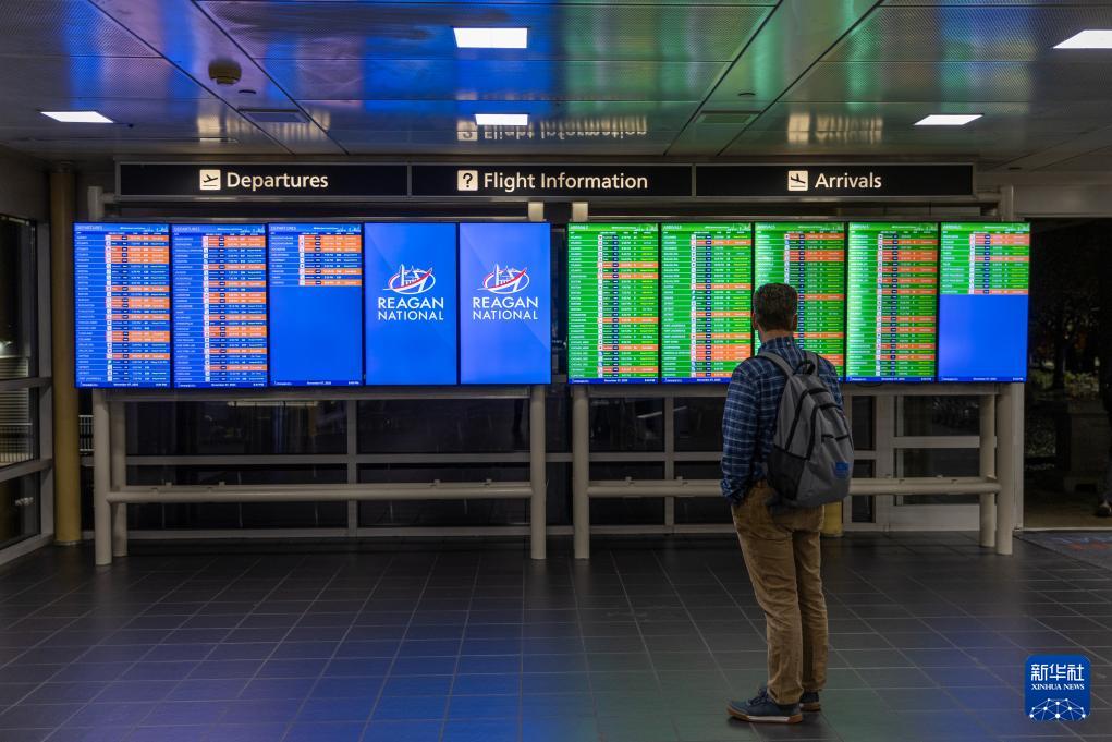 11月7日,在美國(guó)弗吉尼亞州阿靈頓的里根國(guó)家機(jī)場(chǎng),一名男子查看航班信息。