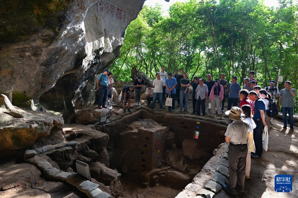 11月8日,考古專家在三亞落筆洞遺址觀察發掘現場。