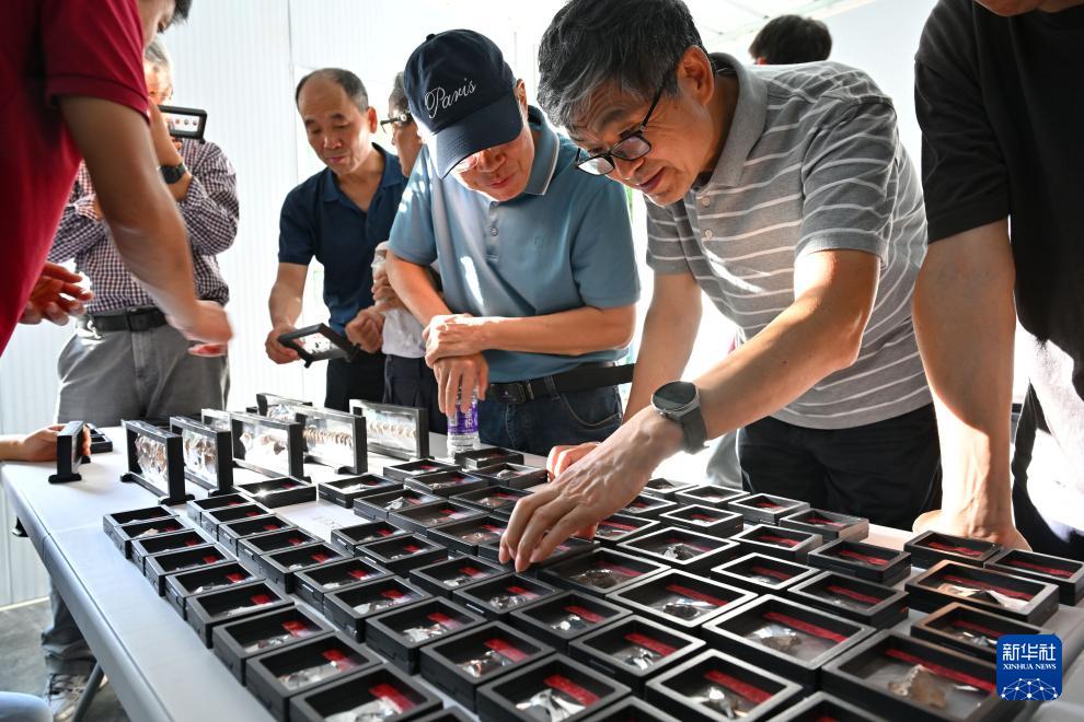 11月8日,考古專家在三亞落筆洞遺址觀察出土標本。