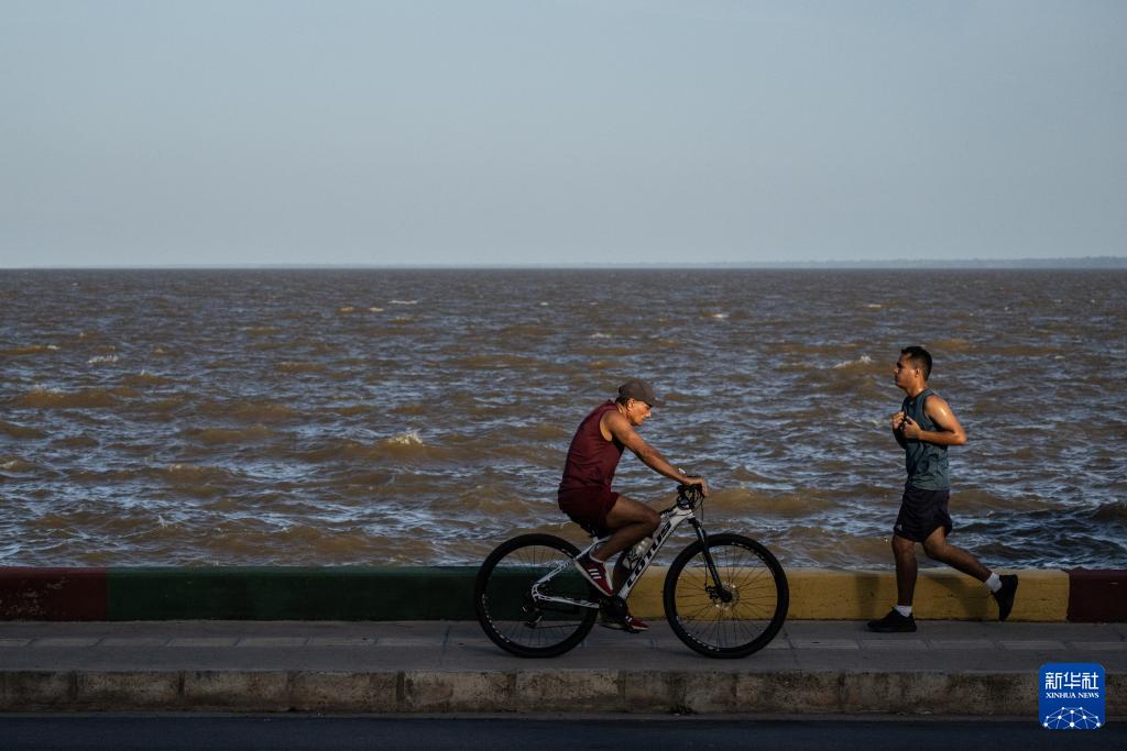 11月9日,在巴西馬卡帕市,人們?cè)趤嗰R孫河畔運(yùn)動(dòng)。