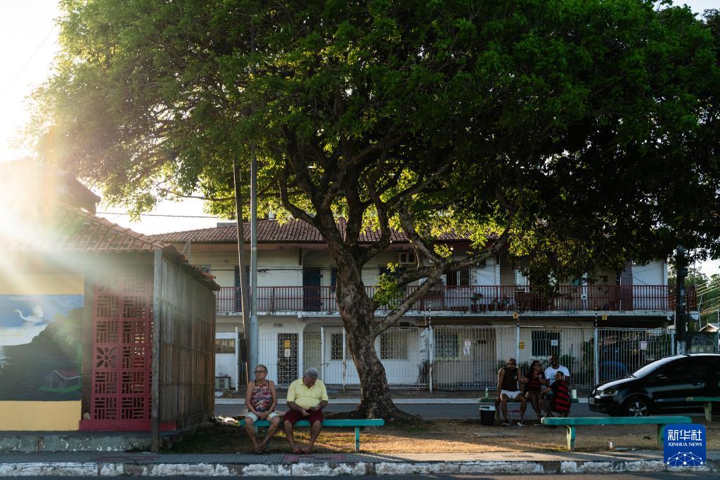 11月9日,巴西馬卡帕市的居民在樹(shù)蔭下休憩。