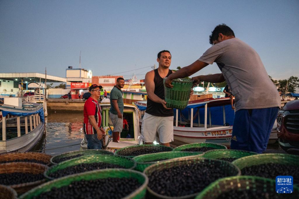 11月8日,在巴西馬卡帕市,工人將運(yùn)抵的阿薩伊果從船只上卸下。