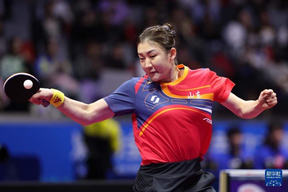 11月11日,孫銘陽(左)與陳夢在比賽中。