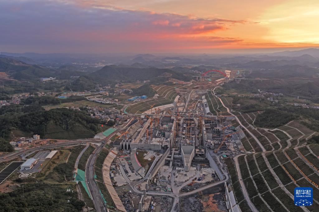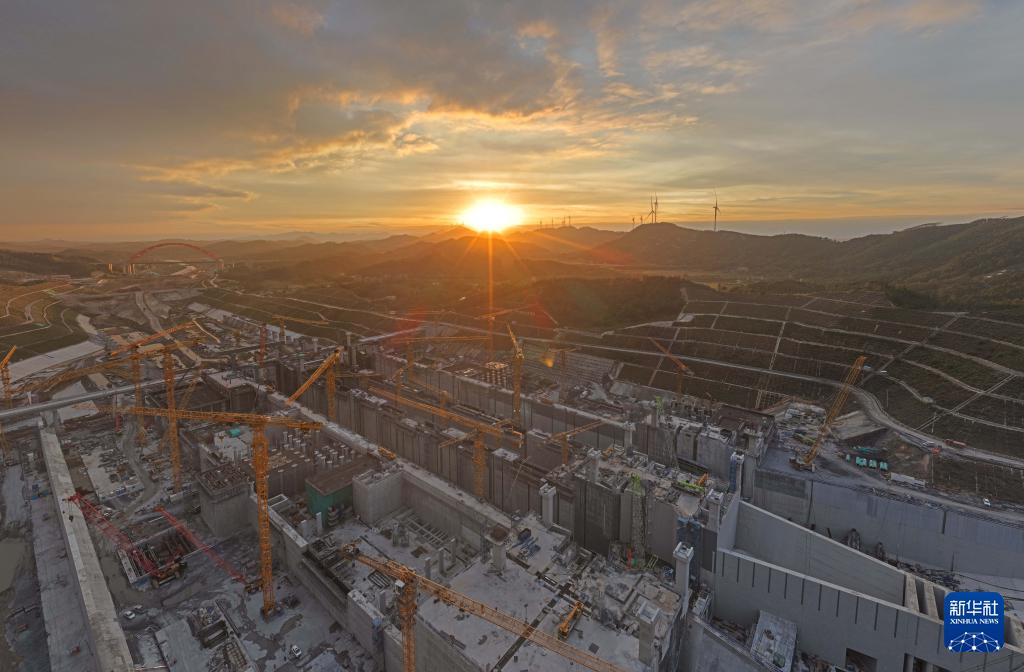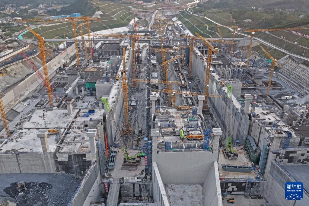 這是11月11日拍攝的廣西平陸運河馬道樞紐施工現場(無人機照片)。