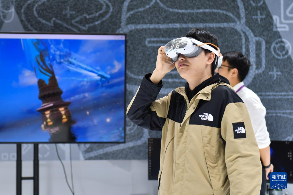 11月12日,觀眾在2025中國(guó)新媒體技術(shù)展上體驗(yàn)VR眼鏡。