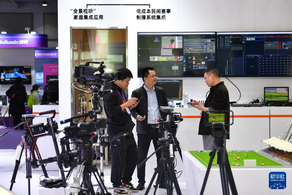 11月12日,觀眾在2025中國(guó)新媒體技術(shù)展上了解拍攝、轉(zhuǎn)播設(shè)備。