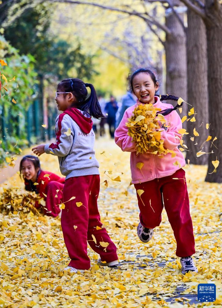 11月12日,三名小女孩在北京西城區什坊小街旁玩耍。