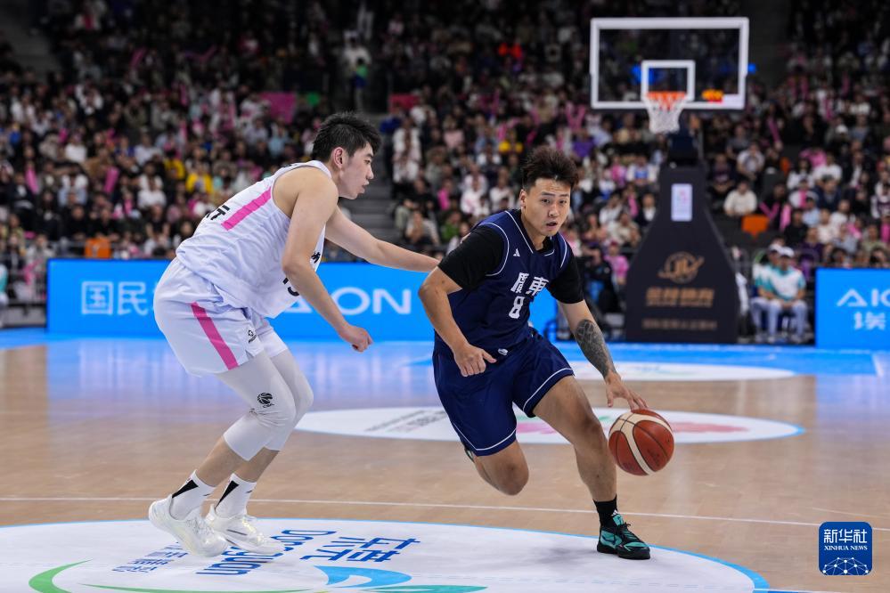 11月12日,廣東隊球員趙睿(右)在比賽中突破。