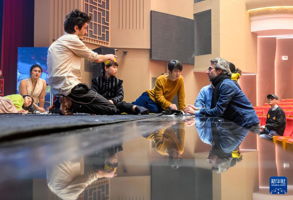 11月14日,導(dǎo)演讓·貝洛里尼(前右)指導(dǎo)演員排練。