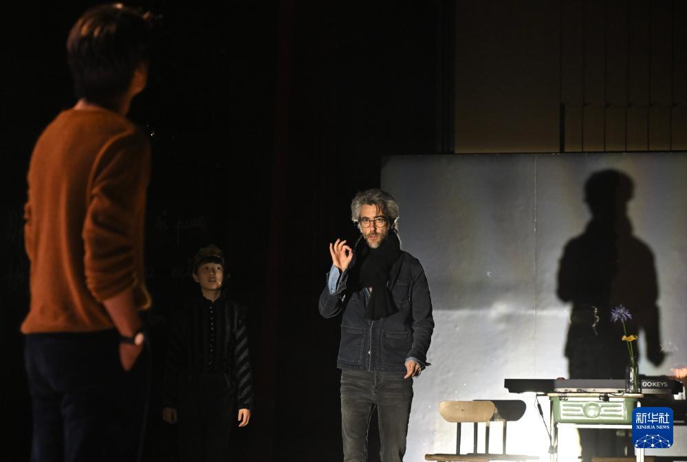 11月14日,導(dǎo)演讓·貝洛里尼(右)指導(dǎo)演員排練。