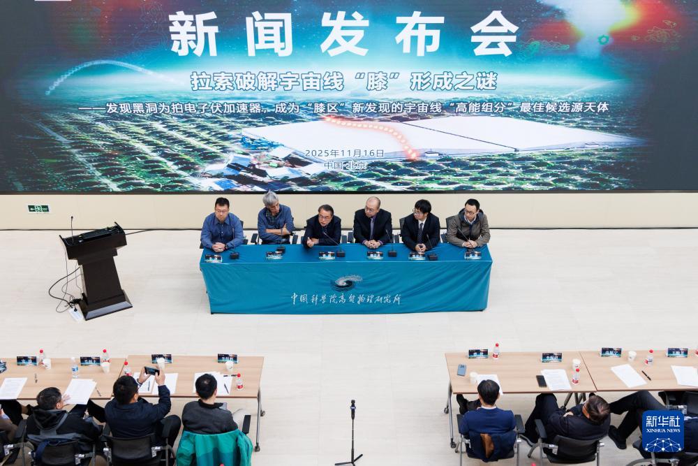 11月16日,在中國(guó)科學(xué)院高能物理研究所舉行的發(fā)布會(huì)上,研究團(tuán)隊(duì)在回答媒體記者提問(wèn)。