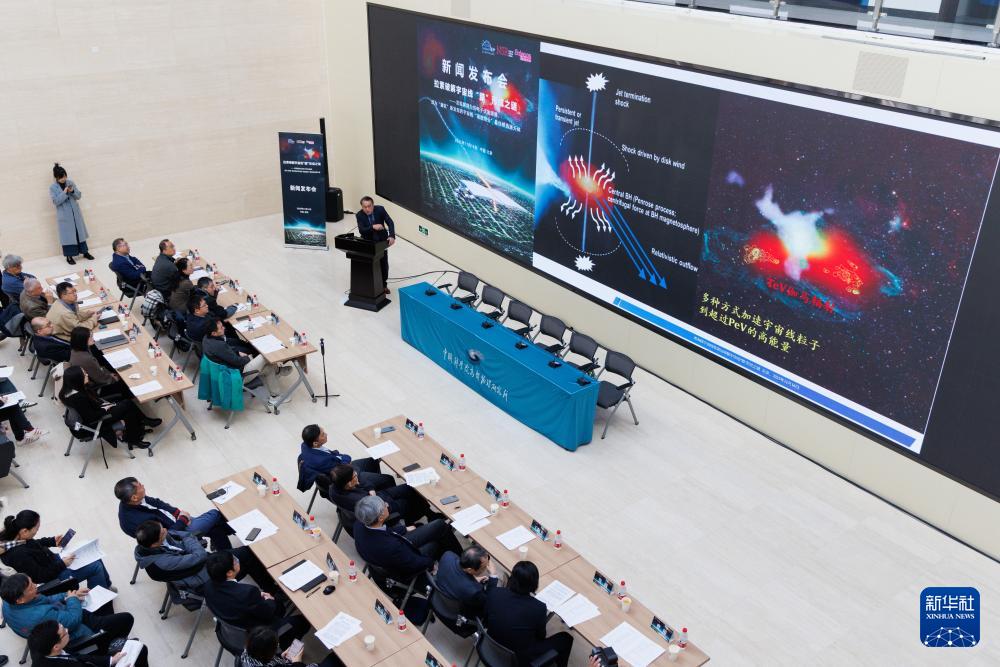 11月16日,在中國科學院高能物理研究所舉行的發布會上,"拉索"首席科學家、中國科學院高能物理研究所曹臻院士在介紹科學成果。