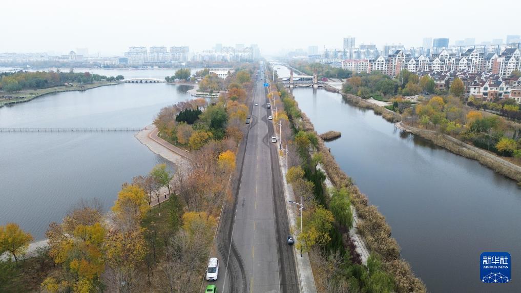 這是11月12日拍攝的東營明潭公園(無人機照片)。