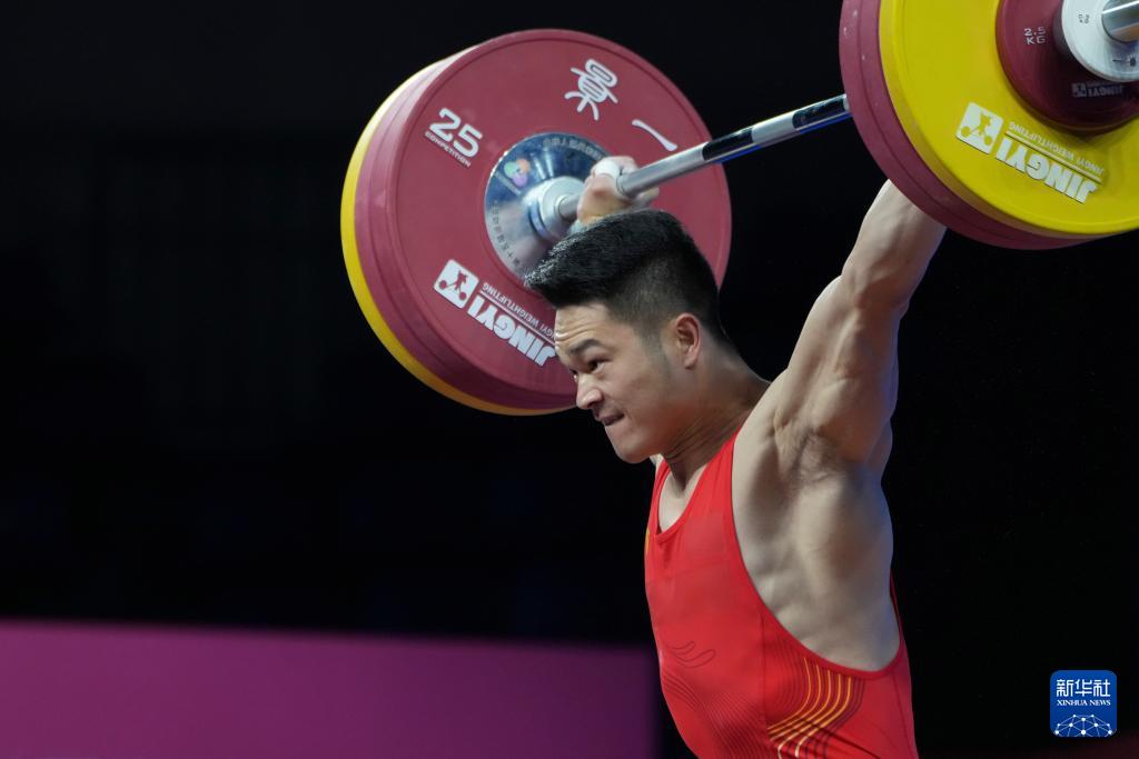 11月17日,成都體育學(xué)院隊選手陸乃港在抓舉比賽中。他獲得亞軍。