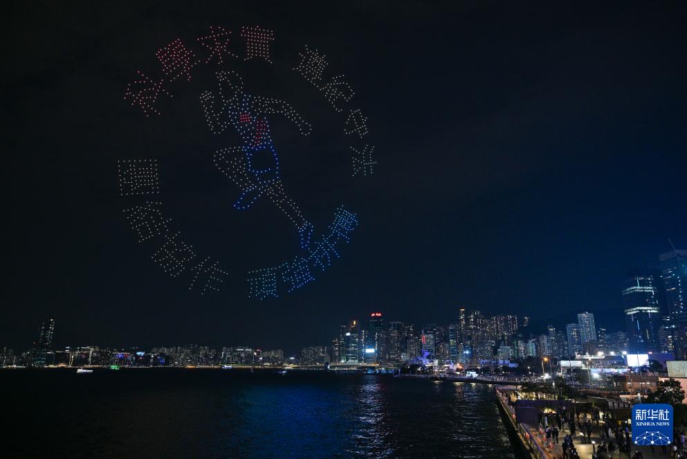 香港舉行“體育力量 閃耀香江”大型無人機表演