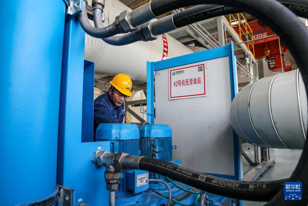 11月19日,工作人員在甘肅電投常樂電廠汽機主廠房內巡檢。