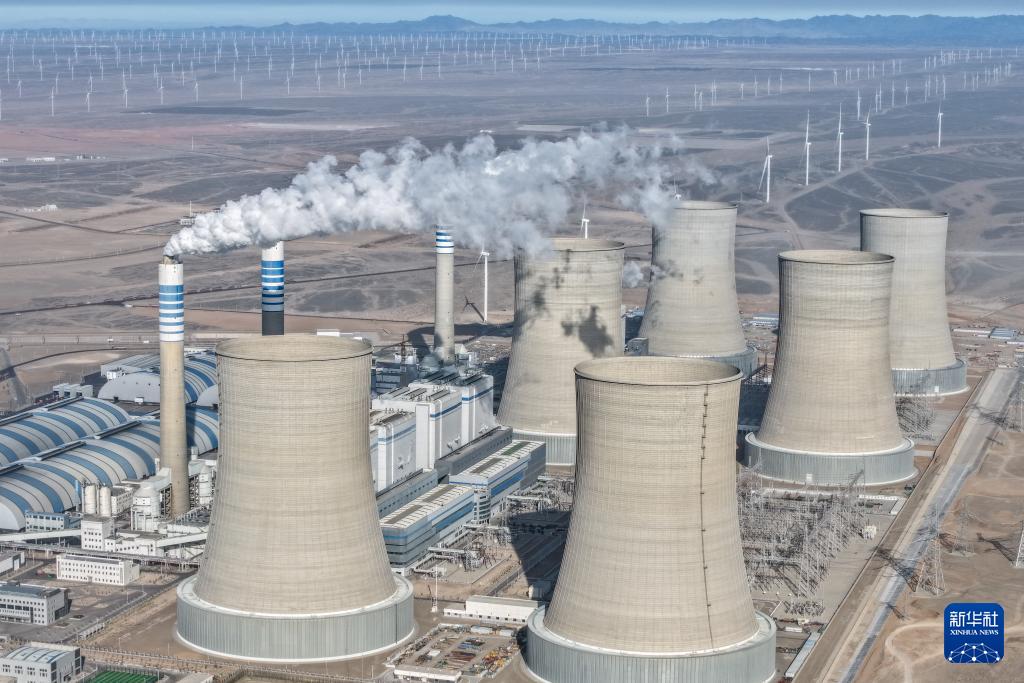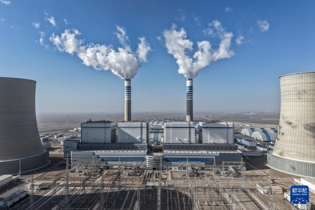 這是11月19日在甘肅省酒泉市瓜州縣拍攝的甘肅電投常樂電廠外景(無人機照片)。