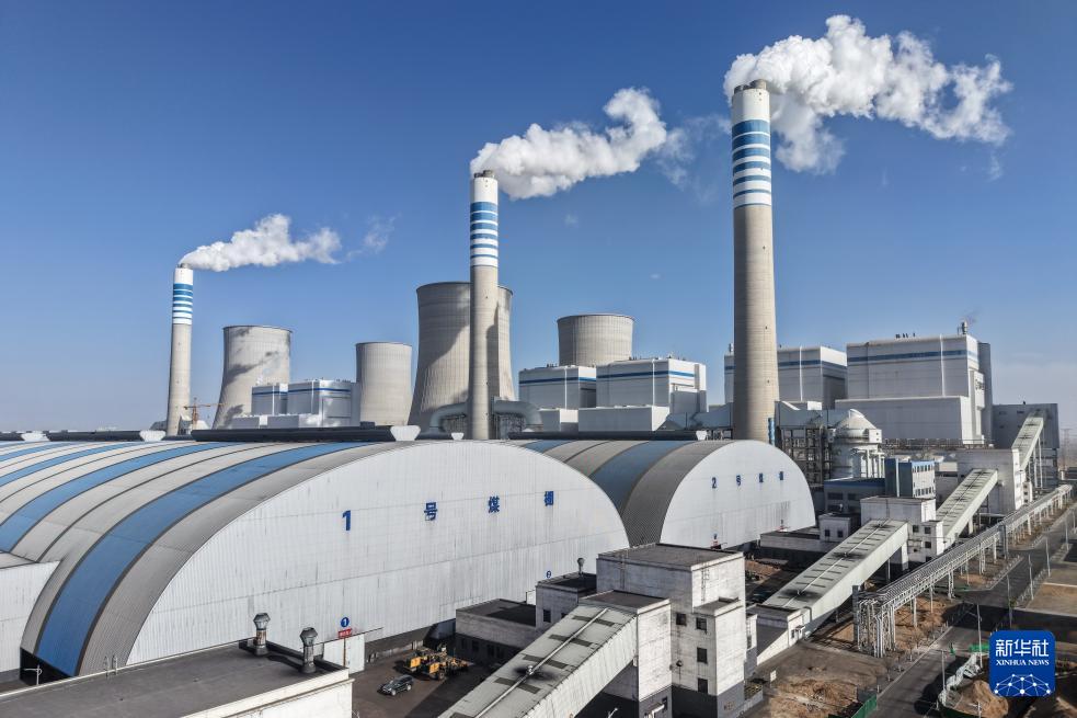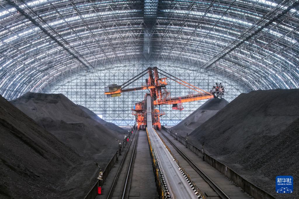 這是11月19日拍攝的甘肅電投常樂電廠煤棚內堆存的燃煤(無人機照片)。