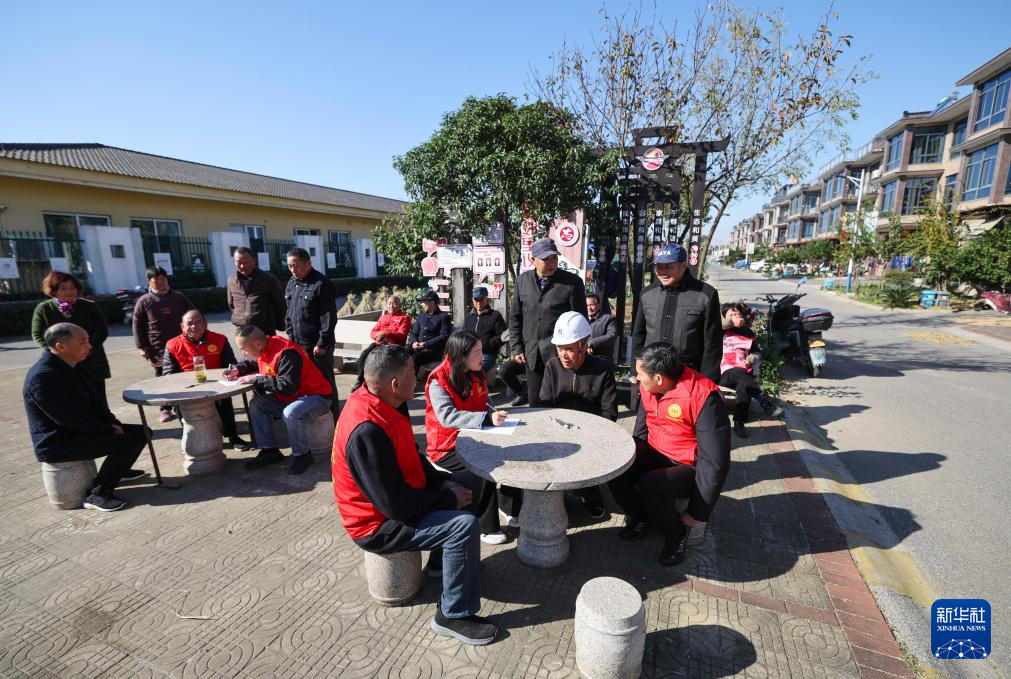 11月19日,呂山鄉(xiāng)龍溪村的村民議事協(xié)商小組在村里的議事協(xié)商公園里就村務(wù)發(fā)展征集意見。