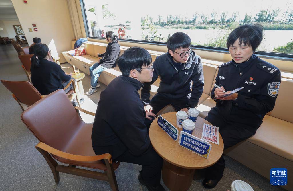 11月19日,道場(chǎng)派出所民警在民宿里給外地游客宣傳反詐知識(shí)。