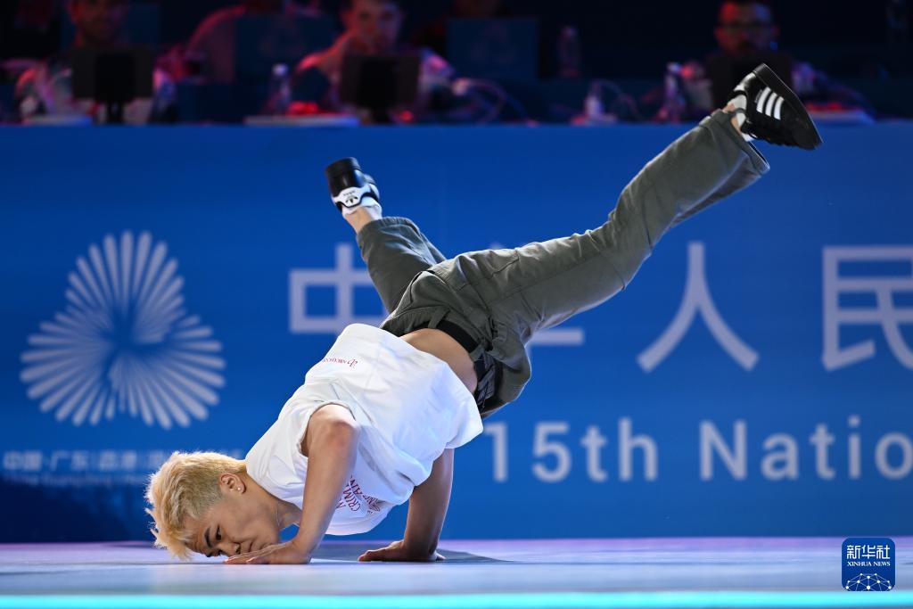 當日,在廣州舉行的第十五屆全國運動會霹靂舞項目男子組金牌賽中,湖北隊選手王瑞苗2比1戰勝江蘇隊選手亓祥宇,獲得金牌。