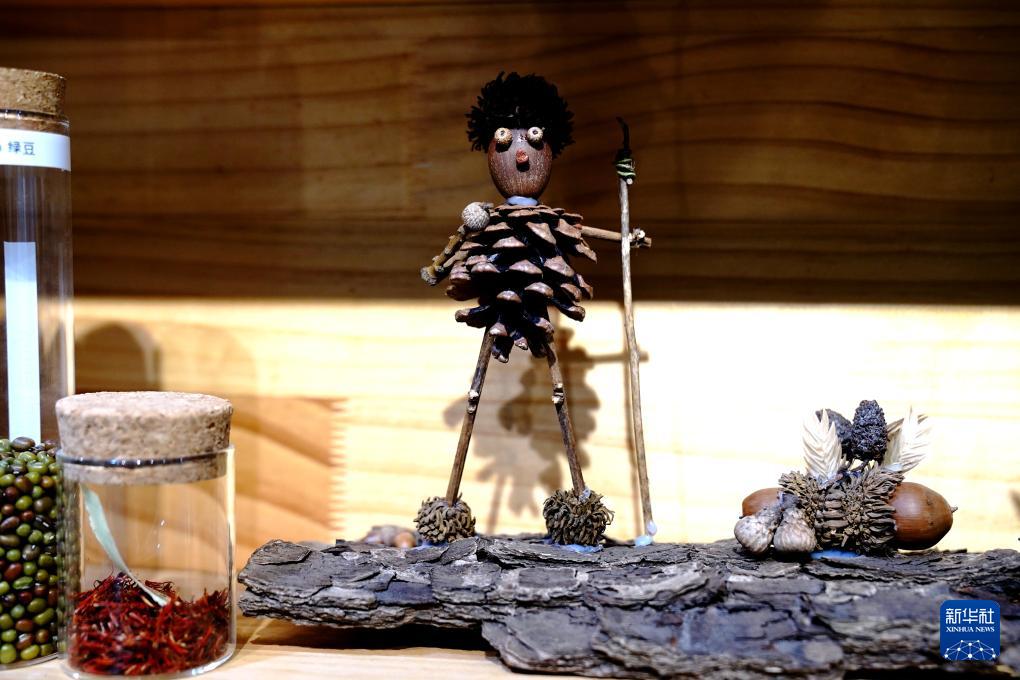 11月19日在辰山中心植物種子標(biāo)本墻拍攝的種子手工小品。