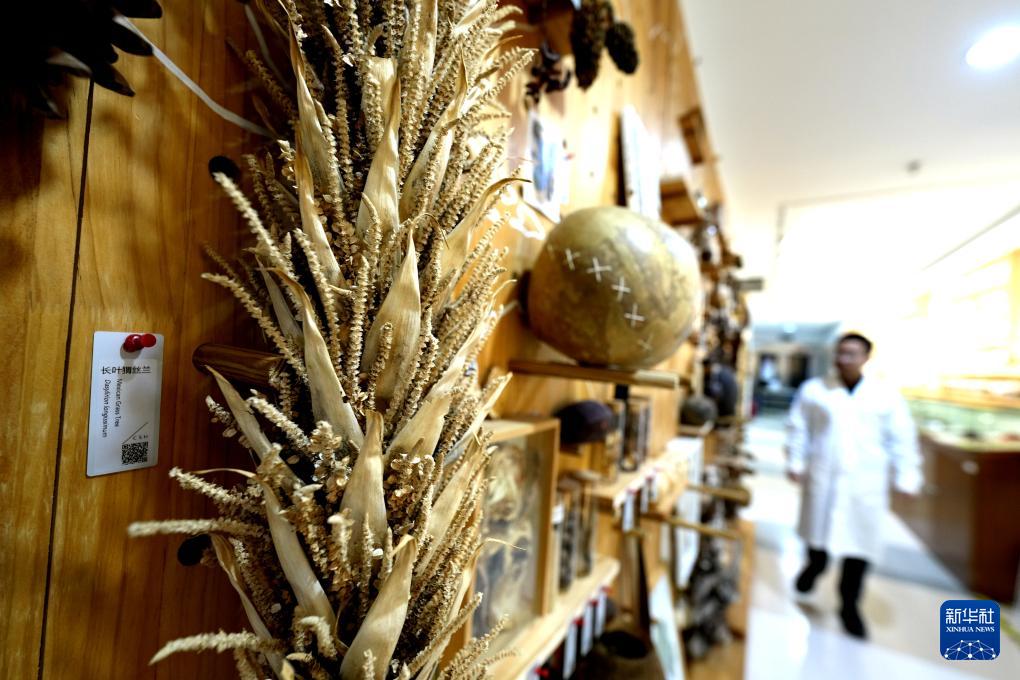 11月19日,上海辰山植物標(biāo)本館館長(zhǎng)葛斌杰在辰山中心標(biāo)本館介紹裸子植物多樣性。