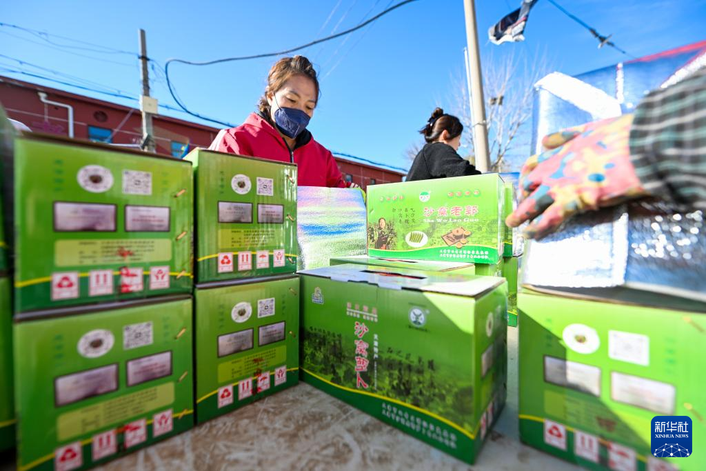 11月20日,在天津市西青區辛口鎮,農民在打包準備發運的沙窩蘿卜。