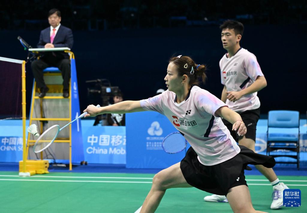 11月20日,浙江隊組合鄭思維/黃雅瓊(左)在比賽中。