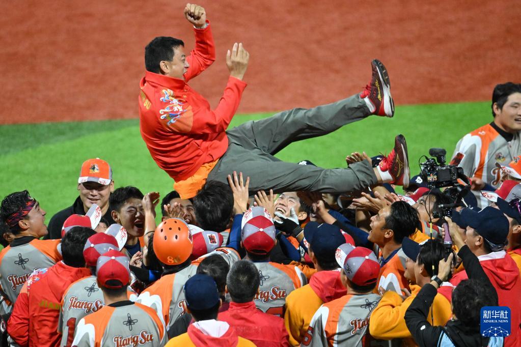 11月20日,江蘇隊(duì)成員在比賽后慶祝奪冠。