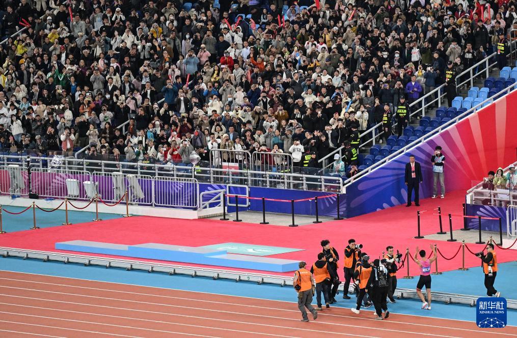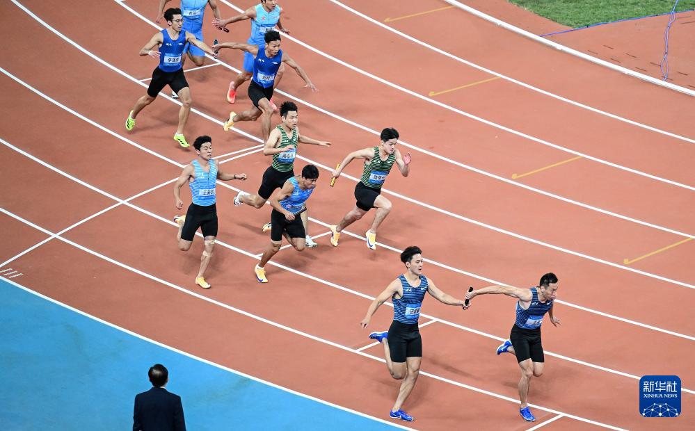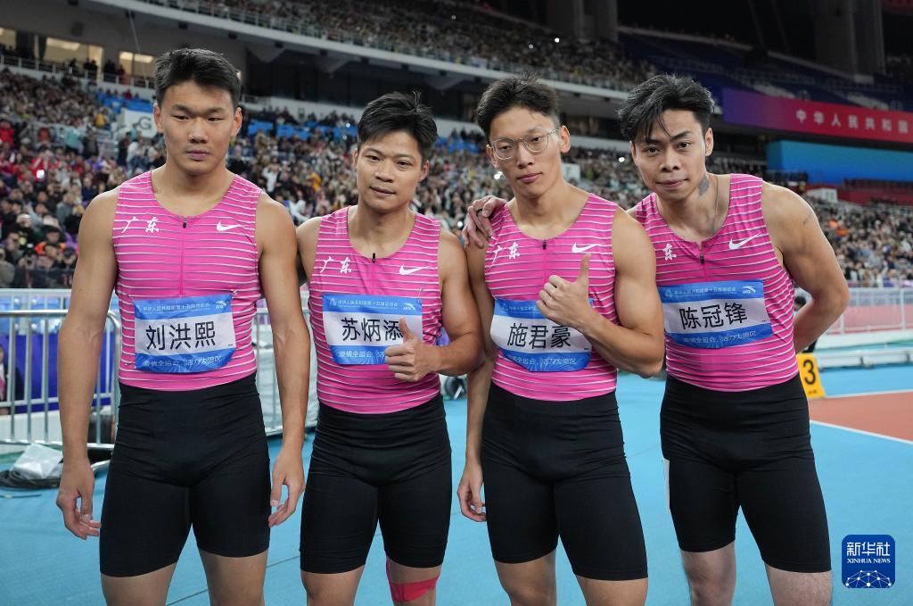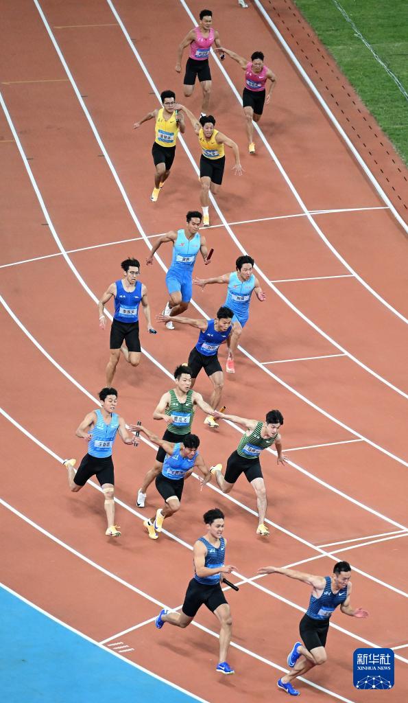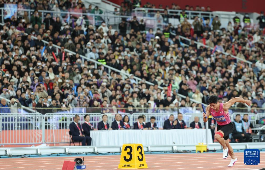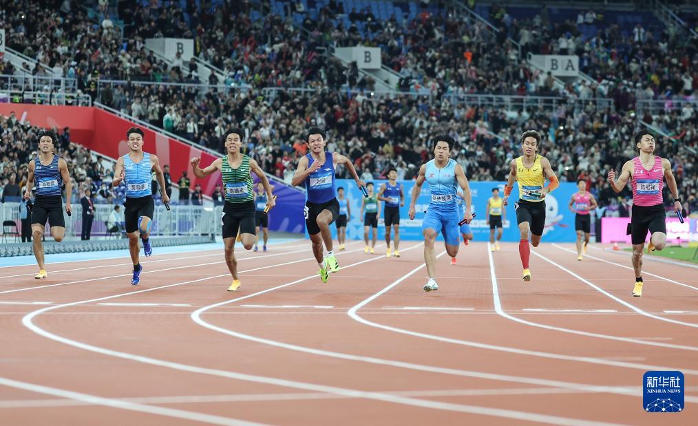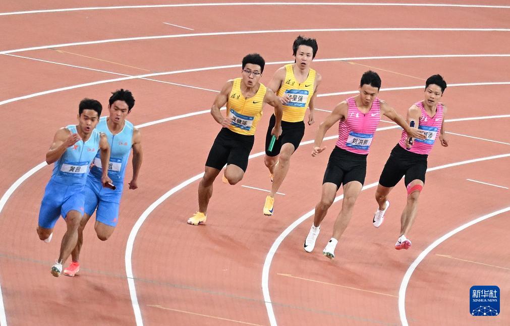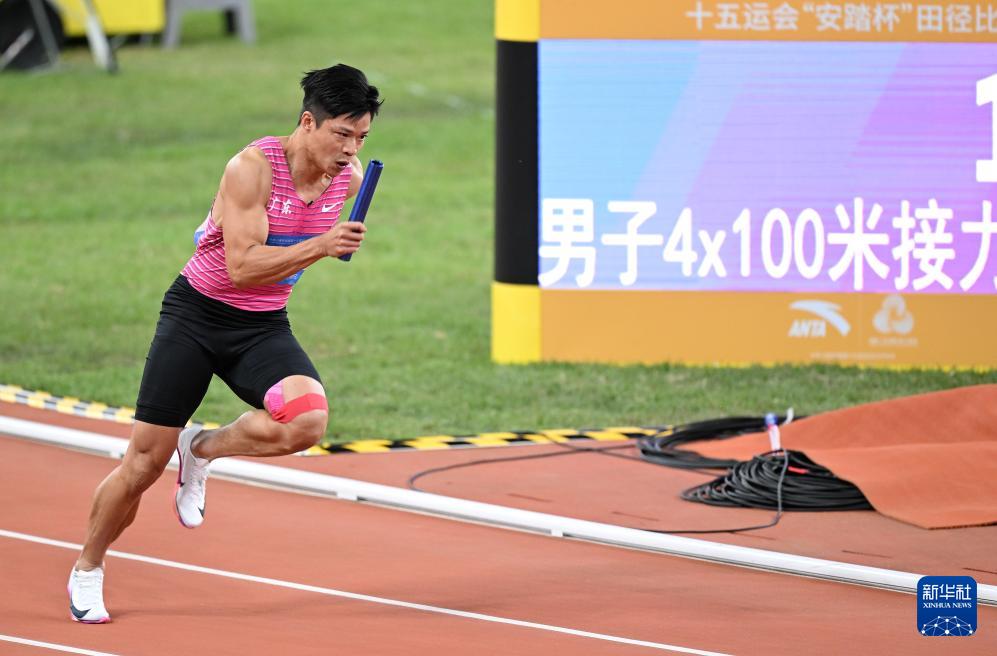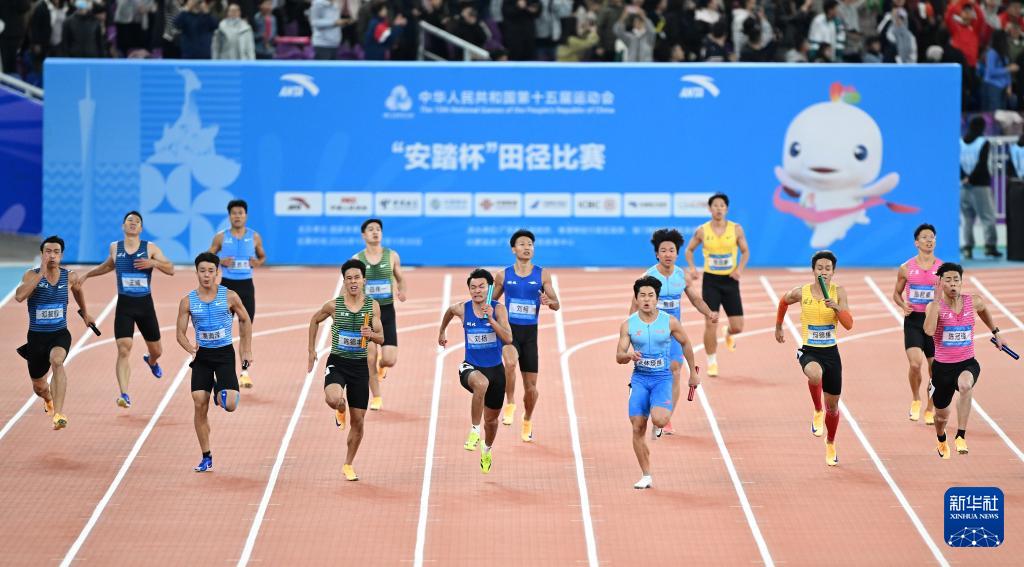 當日,第十五屆全國運動會田徑項目男子4X100米接力決賽在廣州舉行。