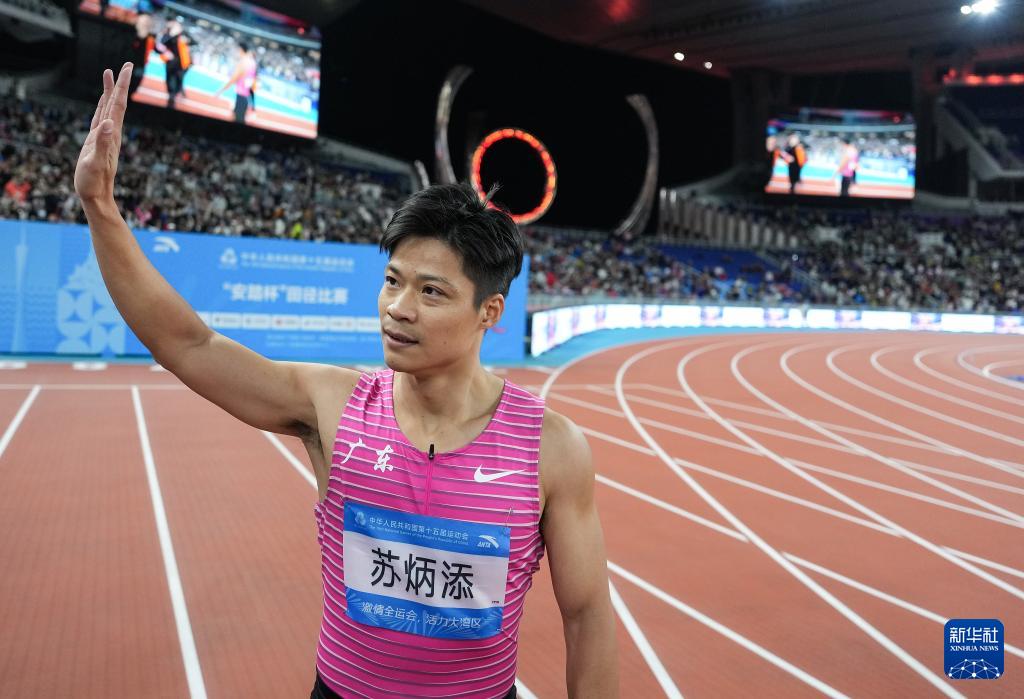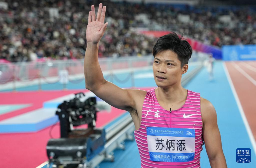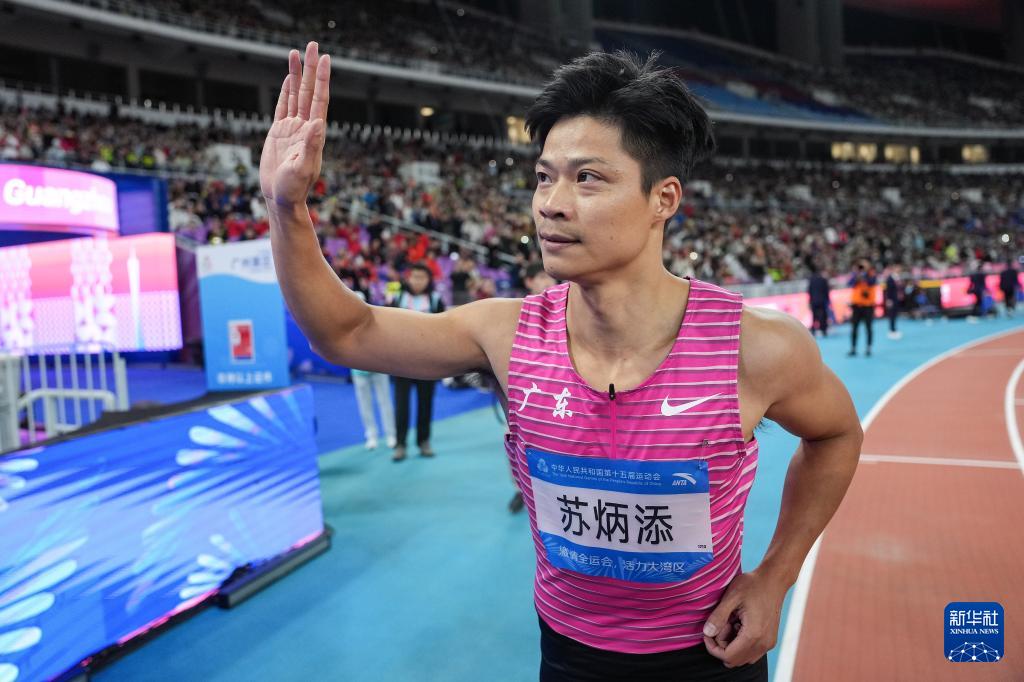 11月20日,廣東隊選手蘇炳添在比賽后向觀眾致意。
