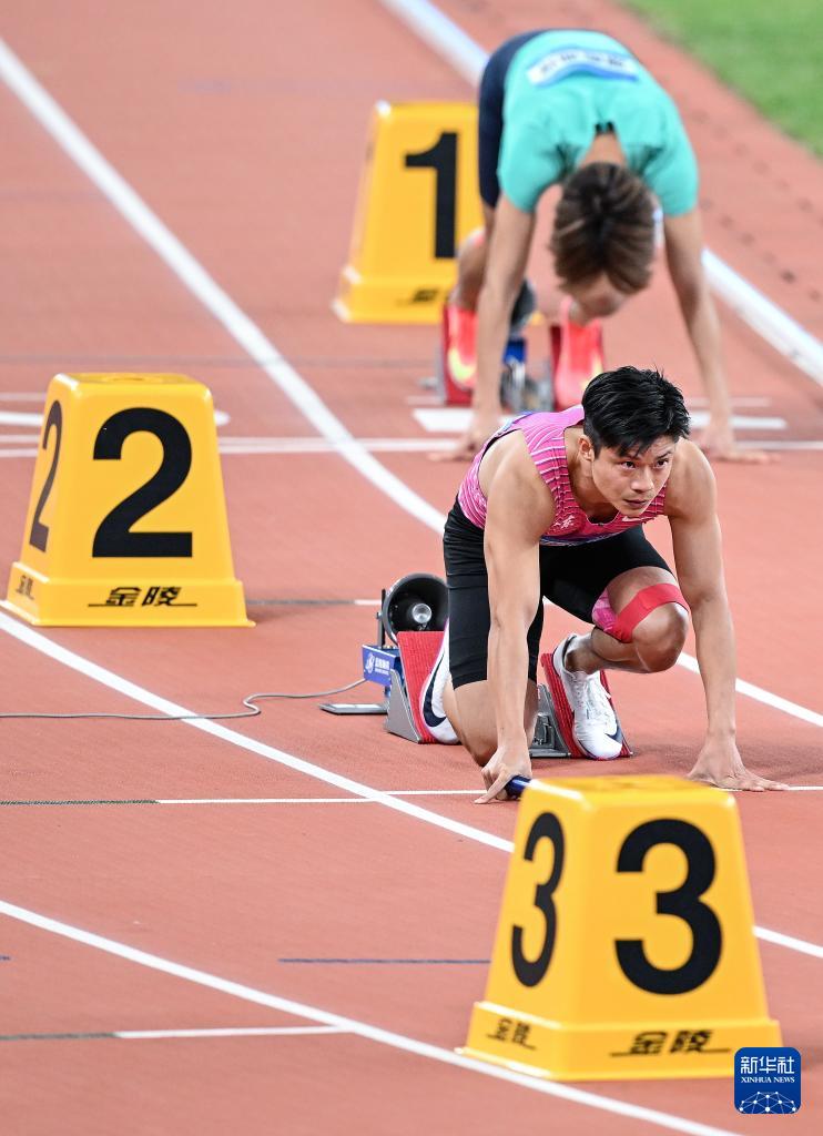 11月20日,廣東隊選手蘇炳添(前)在比賽前準備起跑。