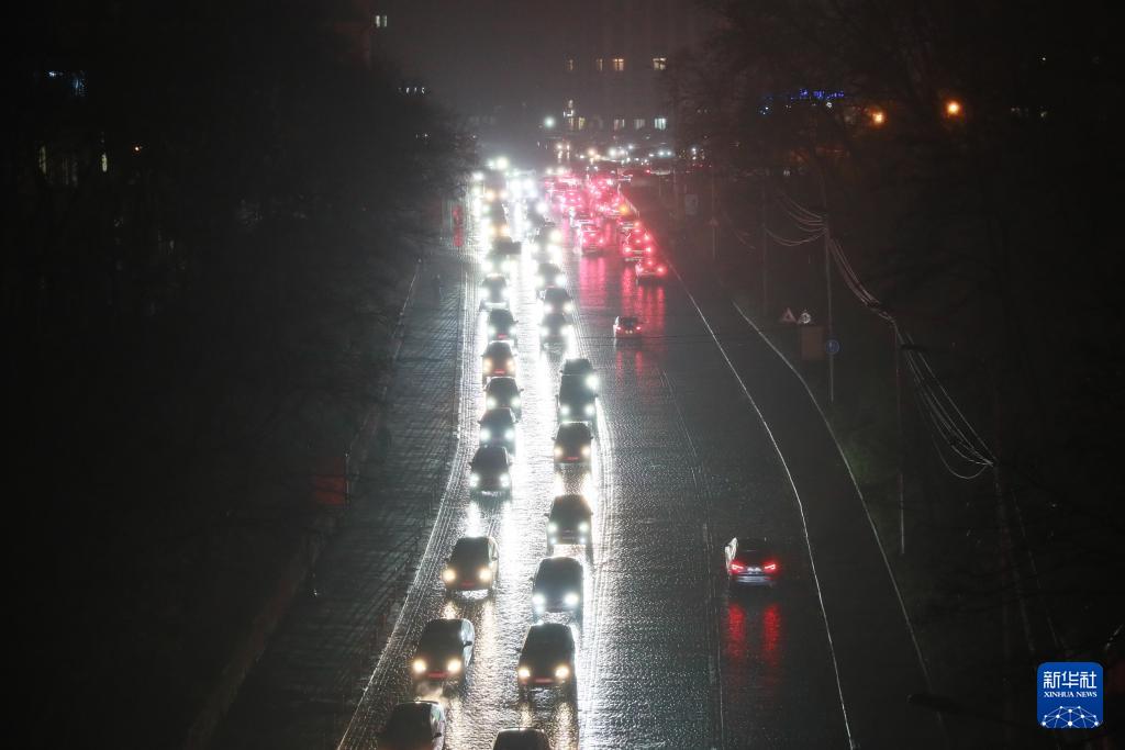 11月20日,烏克蘭首都基輔主要街道的照明設施出現大面積停電,車輛在夜色中行駛。