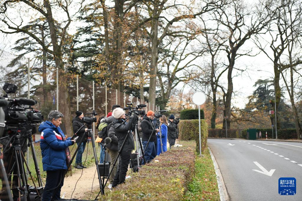 11月23日,記者在瑞士日內瓦美國常駐聯合國日內瓦辦事處代表團駐地外等候。新華社記者 連漪 攝