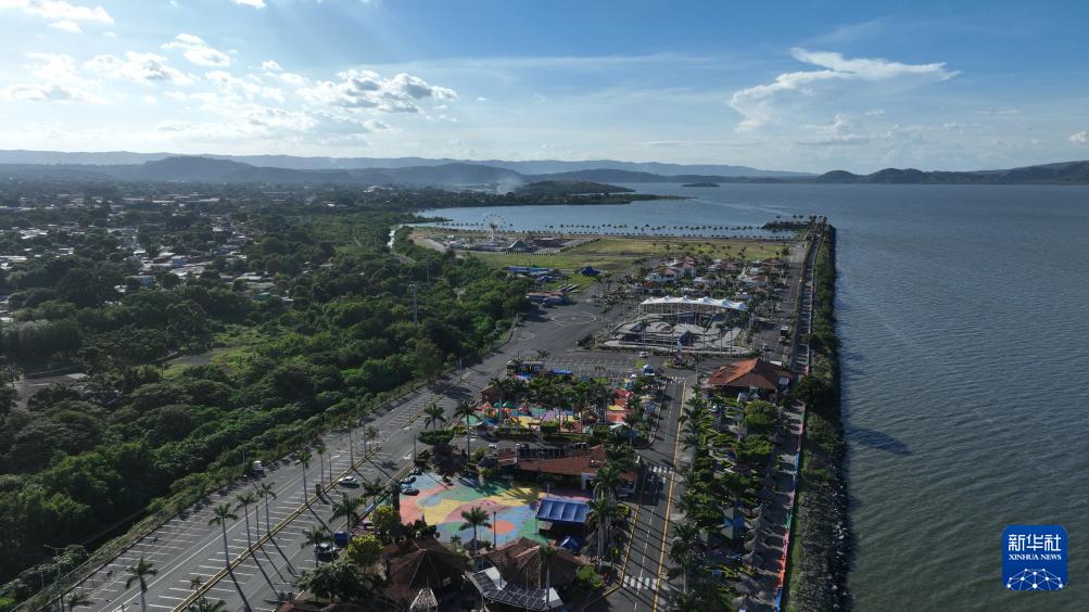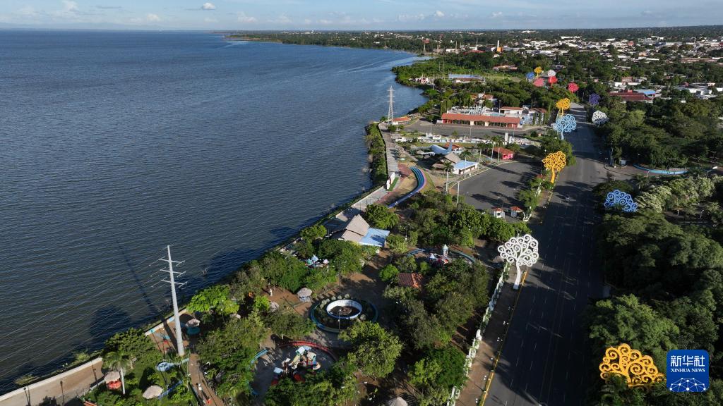 11月17日在尼加拉瓜首都馬那瓜拍攝的馬那瓜湖(無人機照片)。